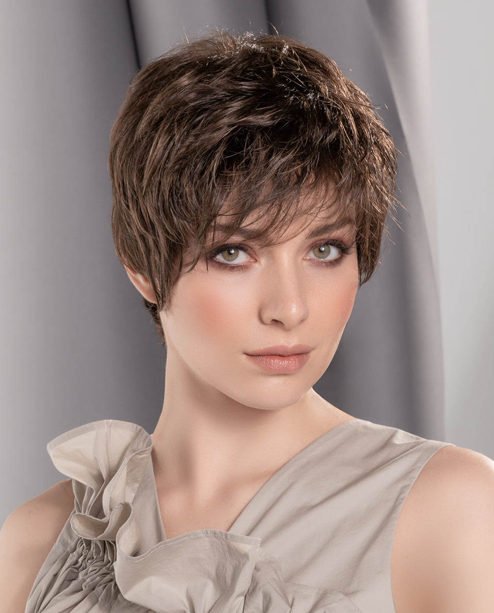 Die BARI aus der Modixx Kollektion von Ellen Wille kombiniert zeitloses Design mit einer natürlich wirkenden Verarbeitung. Im Bereich des Wirbels ist ein Monofilament eingearbeitet – ein feines, hautähnliches Gewebe, in das jedes Haar in sorgfältiger Handarbeit einzeln eingeknüpft wird. So entsteht ein besonders natürlicher Eindruck, der den Haarwirbel realistisch nachbildet.
