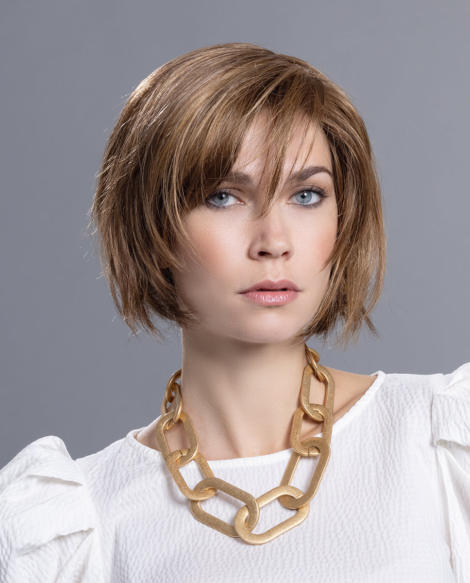 Die FRENCH MONO PART aus der Ellen’s Changes-Kollektion von Ellen Wille bietet einen realistisch wirkenden Scheitelbereich und eine angenehm leichte Passform. Im Bereich des Scheitels ist Monofilament eingearbeitet – ein hauthähnliches Gewebe, in das jedes Haar in feiner Handarbeit einzeln eingeknüpft wird. Dadurch wirkt die Perücke an dieser Stelle besonders natürlich.